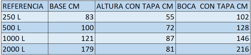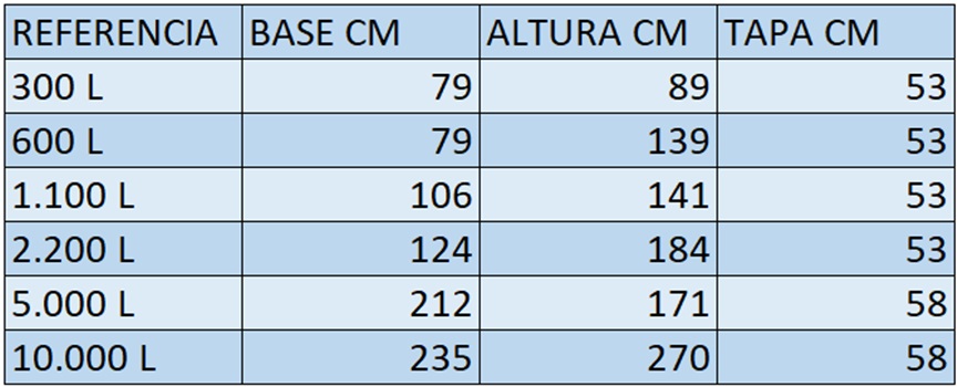 Repele los rayos UV, con capa interior blanca para observar la limpieza del agua en las referencias de 300 L , 600L 1100 L , 2200 L, los de 5.000 L y 10.000 L son unicapa , imagen de referencia puede variar según disponibilidad de moldes. Colores: azul, negro, natural.